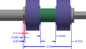 If the stackup definition includes adjacent parts with coincident surfaces that are not correctly aligned in the model, Tolerance Analysis closes the gaps before calculating the stackup nominal. When this condition occurs, the calculated stackup nominal value is slightly different from the measured distance between the stackup endpoints in the model. Use the Add Offset command to specify both the required nominal value of the distance and the associated tolerance if this distance is required to be included in the stackup definition.