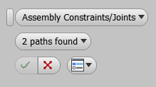 If the assembly contains valid joint or constraint information, the minitoolbar defaults to the Assembly Constraints/Joints selector and you can select a constraint/joint path to define the stackup loop.