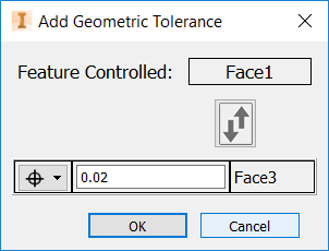 The feature listed in the top value box is assumed to be controlled by the definition of the tolerance in the Feature Control Frame (Face1 and Face 3 in the previous image). If the order is not correct, use the toggle button