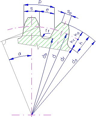 Unit dedendum fillet r f *