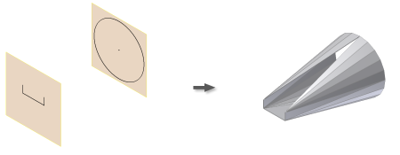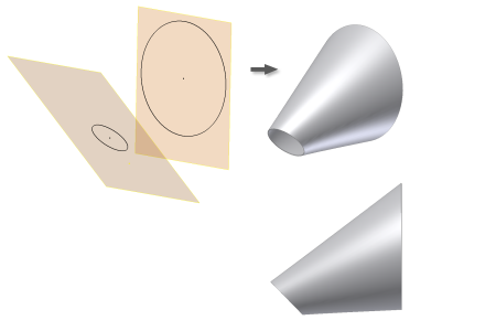The following illustrations show various input and output options for Lofted Flange features. The closer image shows the Lofted Flange perpendicular to sketch planes.