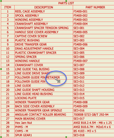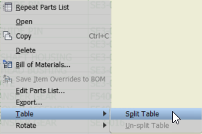 You can split a parts list, hole, revision, or general table and move the split section to a new location or sheet.