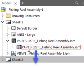 The following example shows how to split a parts list and then move the new segment to a different sheet.