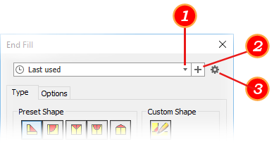 The Last Used preset is made up of the parameters used for the most recently placed feature of that type. Last Used displays when no preset was saved for a newly created feature. You can use the Last Used preset as is or modify its values. At any time you can save the changed preset to a new preset by clicking