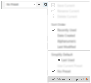 Show built-in presets - built-in presets are displayed by default. They can be hidden if not used.