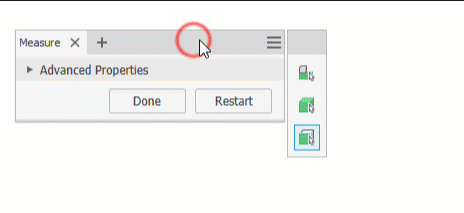 To copy one or all values: Right-click a value and select Copy or Copy All from the context menu. - Click Done to close the panel or Restart to initiate a new measure sequence. You can also initiate a new sequence by clicking in a blank area of the canvas.