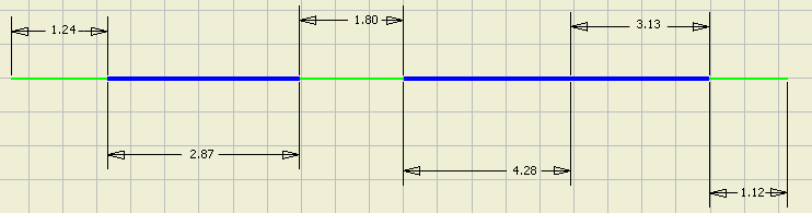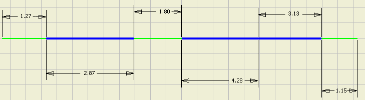 When round up is set to None, then the dimensioning of the segments and exposed wire pieces reflect the actual length except for the wire stubs. The wire stubs still have the embedded length and global slack, if any, distributed equally to each end.