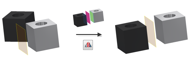 The Symmetry constraint positions two objects symmetrically according to a plane or planar face.