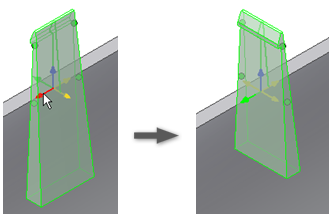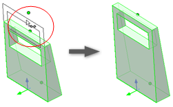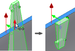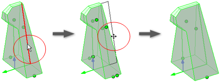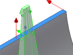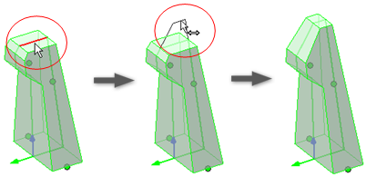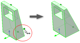 Dot manipulators define some of the angular and linear parameters of the snap-fit. Examples of how dot manipulators work are shown in the following images: