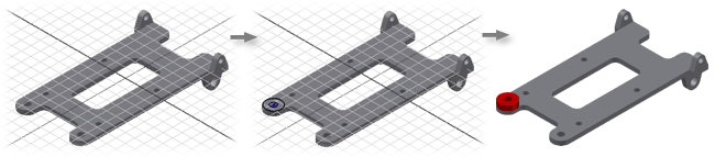 Choose a fundamental part or subassembly, such as a frame or base plate, to be the first component in an assembly. Except for the first placed component, all placed components are unconstrained and ungrounded. You add the constraints you need.