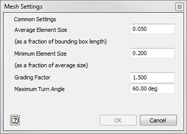 Use the Mesh Settings to manually control the Average Element Size, Minimum Element Size, Grading Factor, and Maximum Turn Angle.