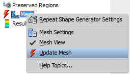 If you adjust the mesh resolution in the Shape Generator Settings after you have previewed the mesh, right-click Mesh in the browser and select Update Mesh to recompute the mesh.