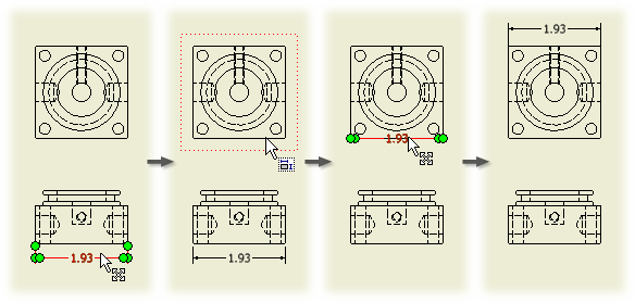 Note: You can move dimensions between views of the same model on one sheet. Dimension attachment points must be available in the target view.