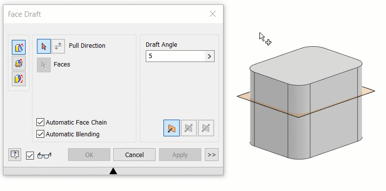 Optionally, expand the dialog box and set the Draft Angle to Absolute or Relative.