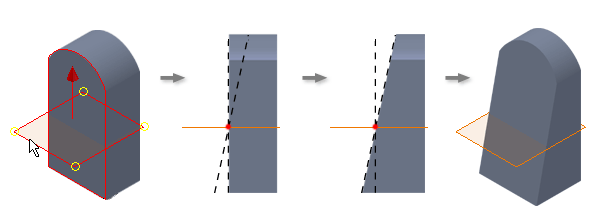 . Creates draft about a fixed plane. The planar part face or work plane determines which selected faces are drafted. Depending on the position of the fixed plane, the draft can both add and remove material.