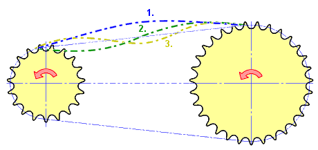 In wave-type vibration, the chain vibrates axially like an elastic bar that is excited at its ends. Wave-type vibration usually cannot be seen. Wave vibration can increase chain tension quite a lot and cause early chain failure. Damaging wave-type vibration can also occur when the tooth contact frequency matches the second harmonic of the natural frequency of the chain.