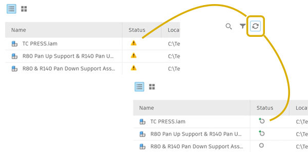 Toggle between list view and thumbnail view. Thumbnails display for local or cloud based projects.