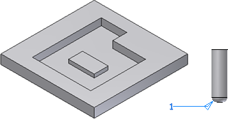To fillet the pocket to model a milling process with a tool of 3 mm. diameter and 1 mm. cutting radius, all the concave vertical edges must have a fillet of 1.5 mm. radius (generated by the vertical approach of the tool), while the edges of the bottom face must have a fillet of 1 mm. radius corresponding to the tool cutting radius