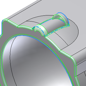 Even after a change in the pocket shape, the Rule-based fillet rebuilds correctly.