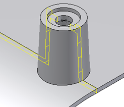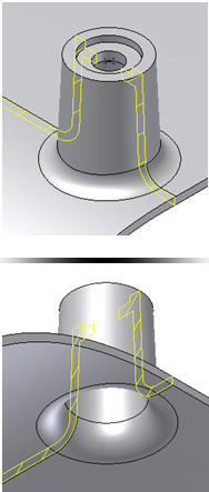 In this example, we achieve a constant thickness wall at the intersection between a feature and the part. A constant thickness wall is often a requirement of molded plastic products.