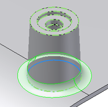 Select the same feature, and enter a radius value. Note that the edges of the planar face get fillets also. The face of the boss is merged with the face of the body.