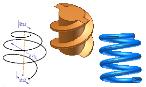 You can use the Coil feature to create springs. To design real spring models using calculations, use spring generators which are available in the Design tab, Spring panel in an assembly.