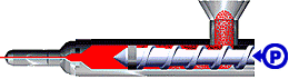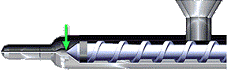 The cylinder is pulled back from contact with the sprue bushing and the injection piston is moved forward, forcing melted plastic from the nozzle. If you catch the melt in a metal cup as it exits from the nozzle, you can use a pyrometer probe to check the temperature. This method is one of the more accurate measurements of the melt temperature.