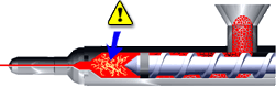 Thermal degradation can occur if the barrel temperatures are too high, rotational speed of the screw is too fast, or the nozzle diameter is too small.