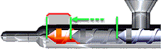 The purpose of increasing back pressure is to make it harder for the screw to return. This increases the shear heating and the mixing of the material, which results in improved polymer melt quality.