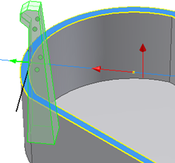 Build the construction elements and a 3D work point on the internal wall edge at the position where the Snap Fit is desired. For example, the 3D work point can be the end of a line that is tangent to the internal edge. The hook direction can be a work axis defined by the 3D work point and the center of the circular edge.