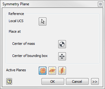 To align the symmetry plane with a UCS, click the Local UCS button and select an active UCS as the reference for the symmetry plane. The symmetry plane is created in the local XY plane of the UCS.