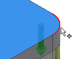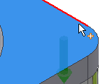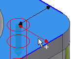 In the graphics window, select the 3D grip to edit the distance of hole center from selected linear edges. Select the button to confirm the distance.