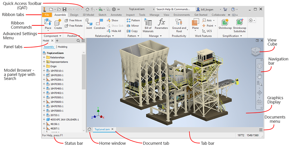 The Inventor application window is the window containing one or more Inventor documents.