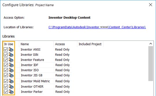 Content Center Files not Available in Inventor