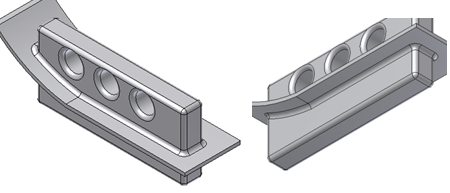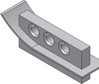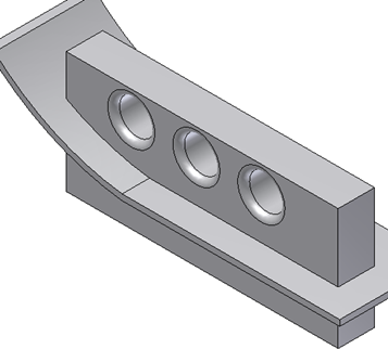 | | - Against features, only the edges generated by the source selected faces and the faces of the features in the scope selection set are filleted. For example, consider the three holes to be in the scope selection set.