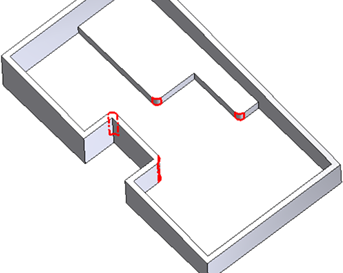 Example: You have a feature like the one in the image (extrusion of a planar profile To Next). You want to fillet all the edges of the feature itself. All the edges at the intersection between the feature and the thin wall of the part.