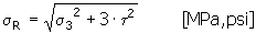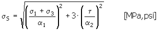 σ 1 , σ 2 | normal stress [MPa, psi] |