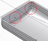 . The constant fillet radius at the intersection between the boss (and ribs) with the target part body.