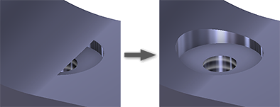 Extend Start: Select to extend the start face of a hole to the first place where there is no intersection with the target body. Extend Start removes a fragment resulting from the creation of the hole. If the result is not desired, deselect Extend Start to undue the result.