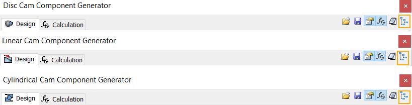 More in the right lower corner of the Design tab to set additional options for cam design. - (Optional) Click