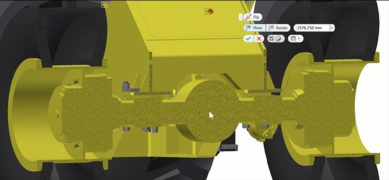 Slice through a model to reveal internal details. Choose from default half, quarter, or three-quarter views, or specify the cutting plane distance relative to the model either explicitly or drag the cutting plane to an arbitrary distance. You can section native, imported, mesh models, and point clouds.