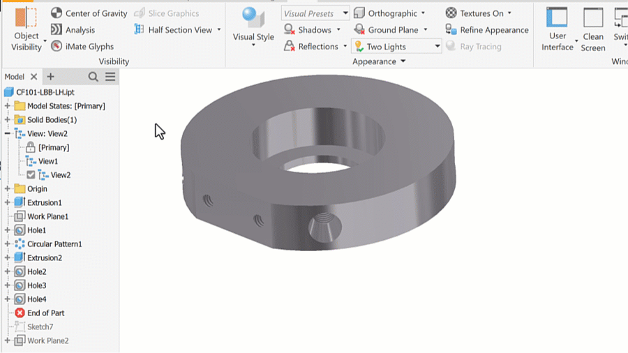 . The model returns to the normal view.End cap visibility is set by default to display end caps for sectioned geometry when the part count is <= 500. If the part count is >500 the end caps do not display. You can override the setting by selecting or deselecting the option in the mini-toolbar.