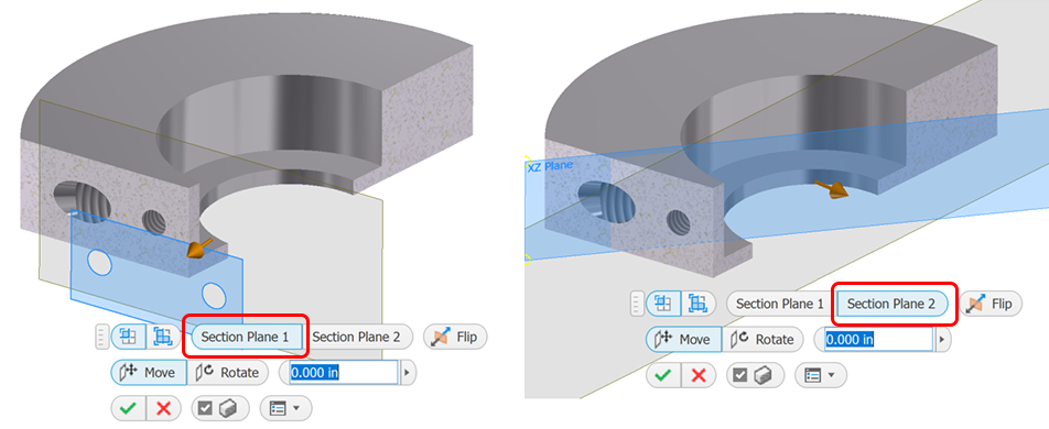 Slice through a model to display a cross-section or interior view without modifying geometry. Use it with parts or assemblies
