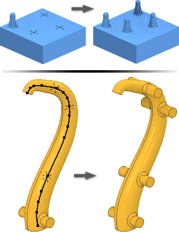 The Sketch Driven Pattern command arranges occurrences of a feature or body on 2D or 3D sketch points. It duplicates one or more features or bodies and arranges the resulting occurrences in a pattern defined by the sketch points.