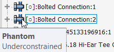 Under constrained A hollow dot indicates the component is under constrained and needs attention. To resolve, start by opening the Edit Constraint dialog box to identify possible issues.