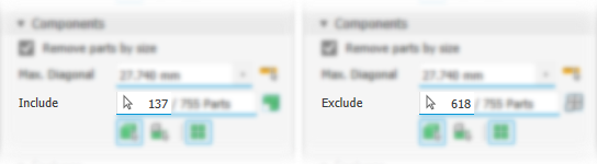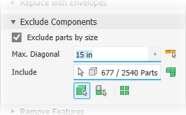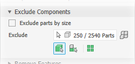 Exclude parts by selection (default). Exclude parts by size is deselected and the Exclude selector is active.