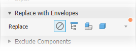 Each Part - creates envelopes for all parts in the assembly. Feature selection tools are hidden.When any of the replacement choices are selected, you can specify the Type: