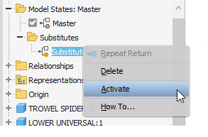 Right-click the Substitute you want to edit and click Activate. The model updates to display the substitute.