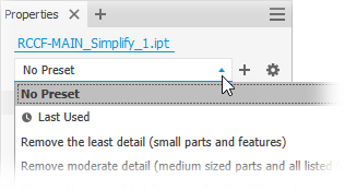 The Simplify command is used to both create and edit simplified parts. Legacy shrinkwrapped parts use the Simplify property panel when edited.
