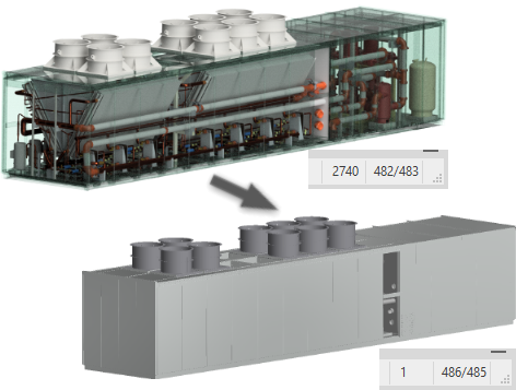 Replace with Envelopes provide the means to replace components with simple shapes. When you click on an option, preview shows the parts represented as envelopes.